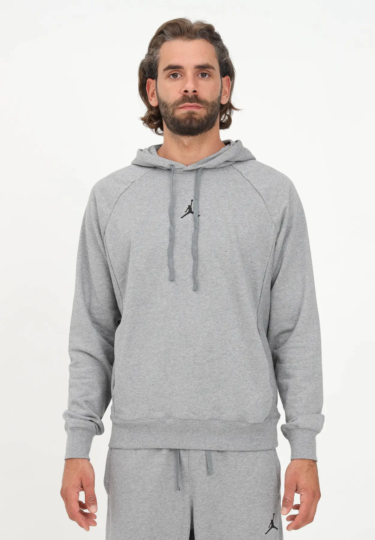 Чоловічий бомбер Jordan M J Df Sprt Csvr Flc Po Grey DQ7327-091 виконаний з якісного поліестеру та бавовни. Дана кофта відмінно підійде для зручного повсякденного носіння або занять спортом.