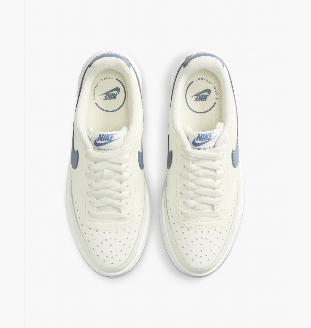 Жіночі кросівки Nike W Court Vision Alta Sail Diffused Blue DM0113-102 виконані в білому кольорі, вони стануть важливим елементом у повсякденному образі.