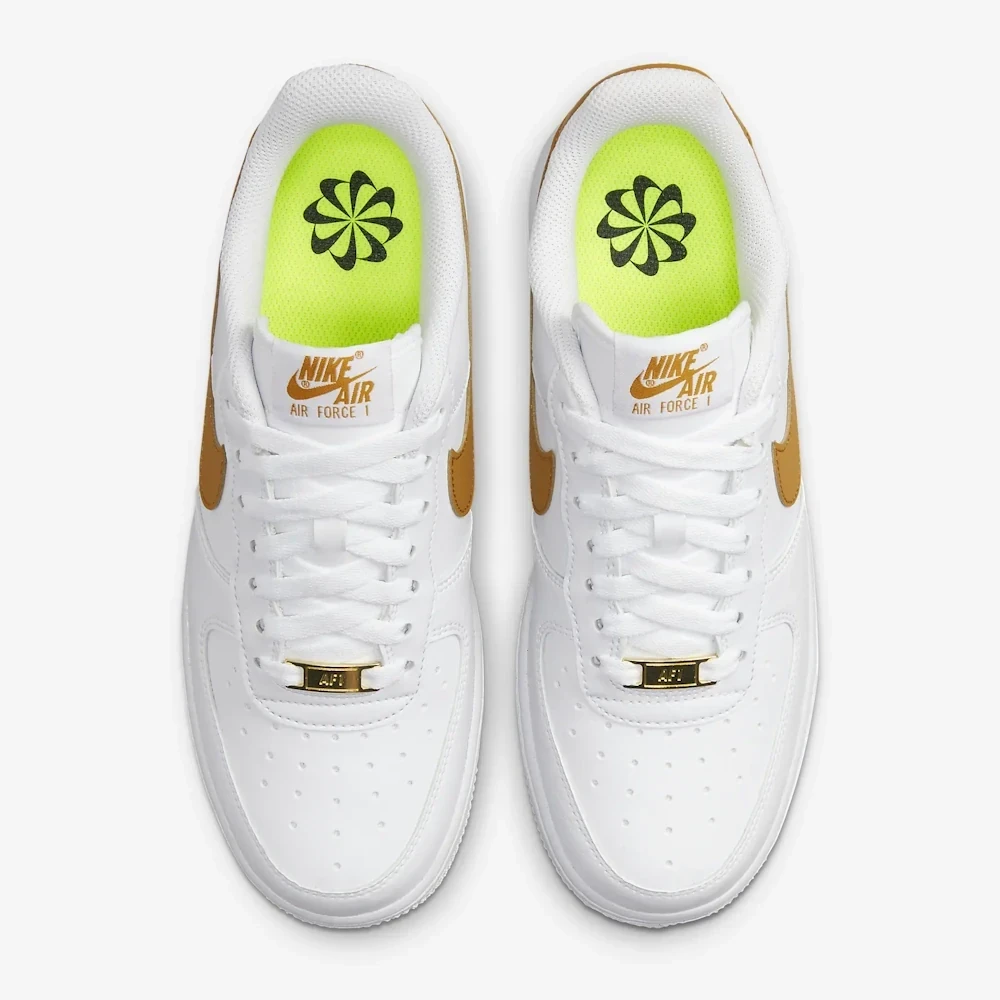 Женские кроссовки Nike Air Force 1 ’07 Next Nature White/Gold DN1430-104 выполнены из натуральной кожи. Данная модель кроссовок отлично подойдет для удобной повседневной носки. Кроссовки являются универсальными и подходят под разные температурные режимы, но чаще всего их используют именно как демисезонные кроссовки.